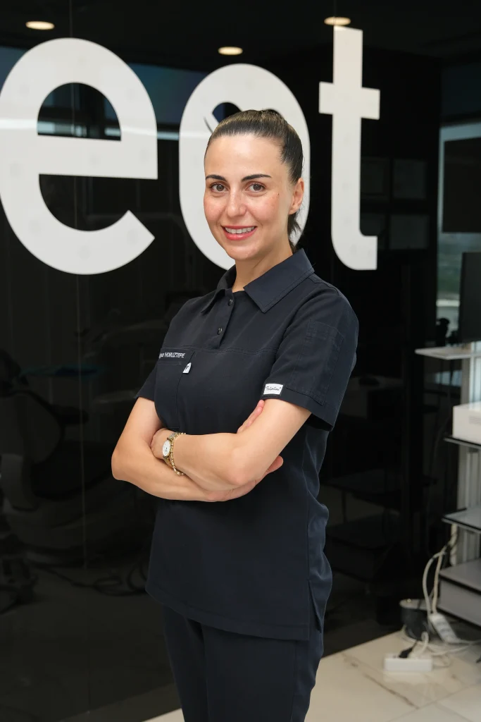 Dr. Aynur Horuztepe Atak’s areas of interest include aesthetic dentistry, digital dentistry and smile design applications, minimally invasive dentistry, preventive dentistry (resin infiltration treatment), tooth whitening, bruxism (teeth grinding), composite and ceramic laminate restorations, and the safe removal of amalgam fillings using the SMART protocol. She has been practicing as a Restorative Dentistry / Aesthetic Dentistry Specialist at EOT Clinic Ankara since 2015.