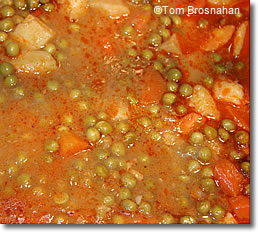 Green peas (bezelye, beh-ZEHL-yeh) are used in stews and in a few meze (appetizers, hors d’oeuvres) such as Rus salatası (Russian salad, also called American salad, made with mayonnaise). They are usually visually identifiable, as in bezelyeli kebap, lamb stew with green peas, potatoes and carrots.
