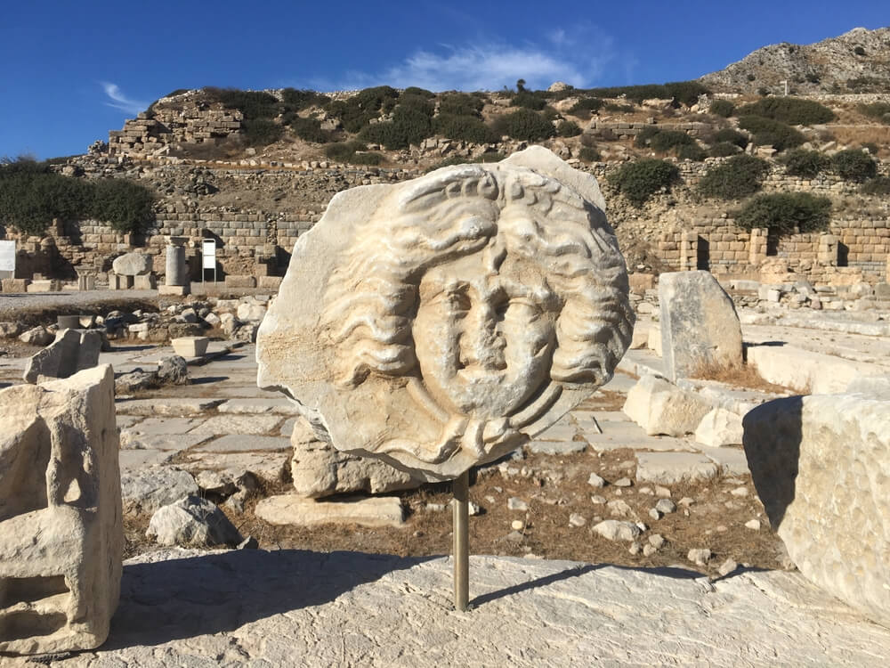 When I think of a ruined Greek temple, I think of the Temple of Zeus at Euromos, the perfect Hollywood-like example: most of its columns standing, dignified but forlorn, in the midst of olive trees. You can easily stop here on your drive north, as the temple is just east of the highway.