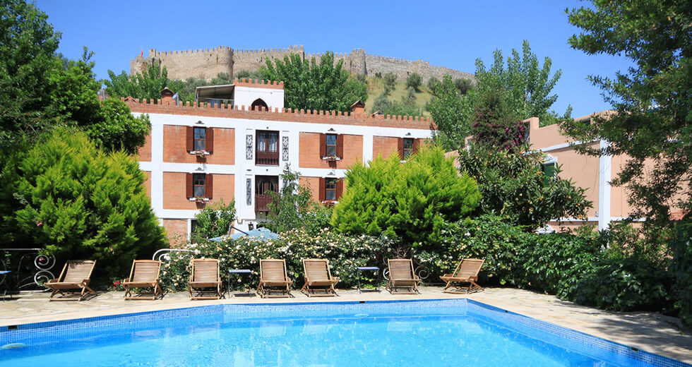 A quiet, cool, flower-filled refuge beneath the walls of a medieval fortress: that’s the Hotel Kalehan in Selçuk, near Ephesus.