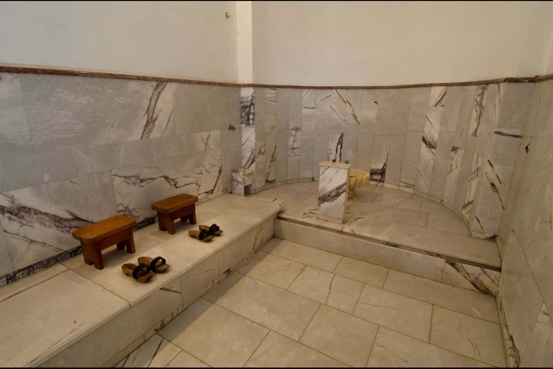 The air-conditioned master bedroom features a double bed with handcrafted wooden side tables, a built-in wardrobe, and a vanity table with a collection of German and English books provided. The beautiful space has a stunning private sitting room overlooking the garden – perfect for relaxation. Two additional bedrooms feature a large double/twin bedroom with air-conditioning, bedside tables, reading lights, and a wardrobe. A fourth bedroom – spacious twin bedroom – consists of working air-conditioning, an extra single sofa bed that can be opened when required, wardrobe, side tables, reading lights, and a large collection of German and English books. Bedroom #5 sits in front of the Turkish bath. This room can be used as a small private sitting room and bedroom where guests can enjoy beautiful views through the large sliding windows over the pool and garden.