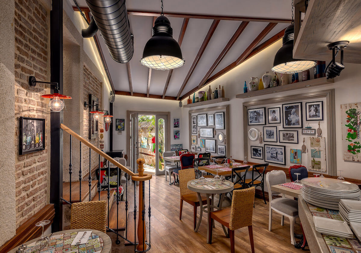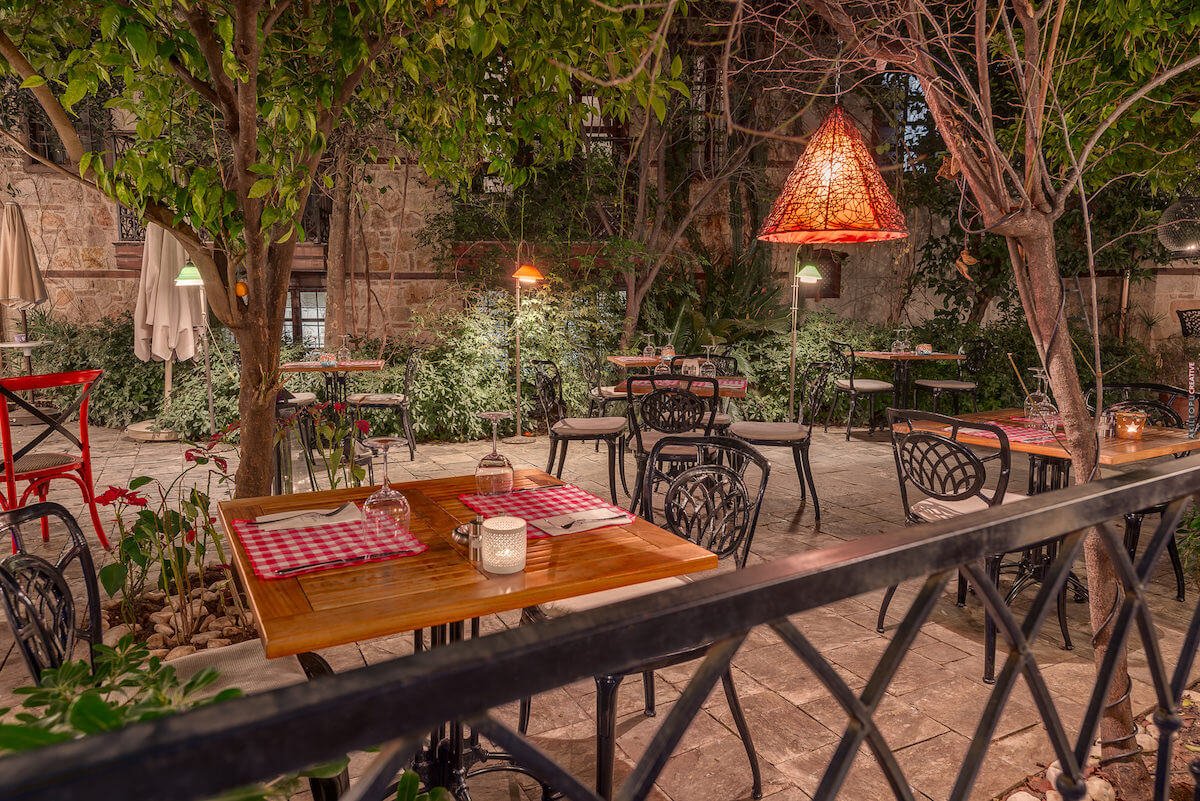The hotel's Turkish restaurant, Kaftani, has two dining rooms (with a fireplace for winter evenings), and a beautiful garden beneath the fruit trees for dining when the weather is fine.