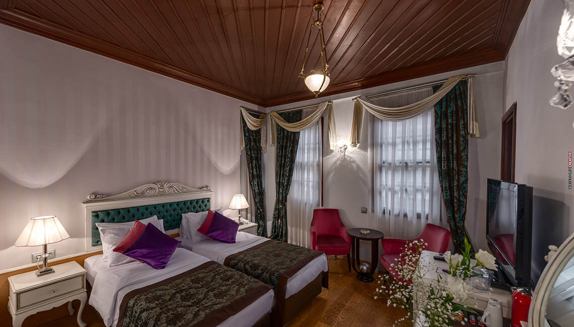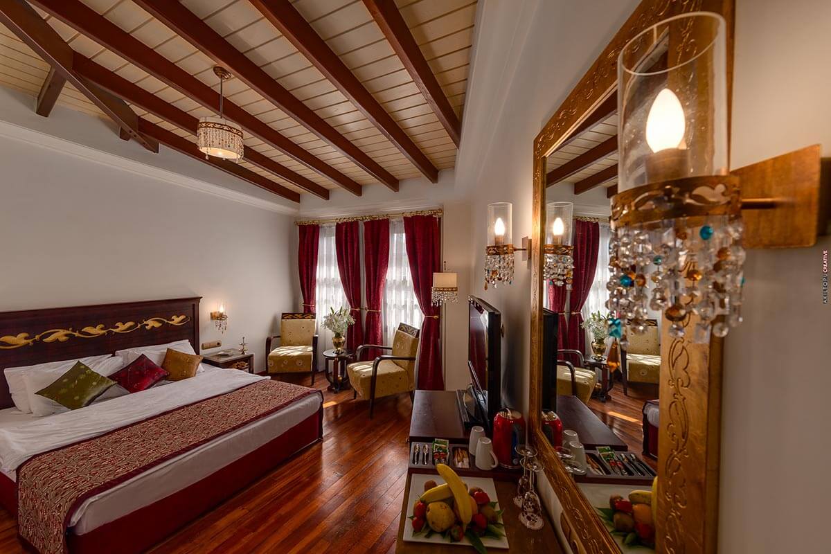 Each of the houses has a different character and ambiance, with its own antique decor, sitting rooms, and atmosphere. All guest rooms have flat-screen satellite TV with Turkish, European and American channels, direct-dial phones, minibars, and modern private bathrooms with hair dryers.