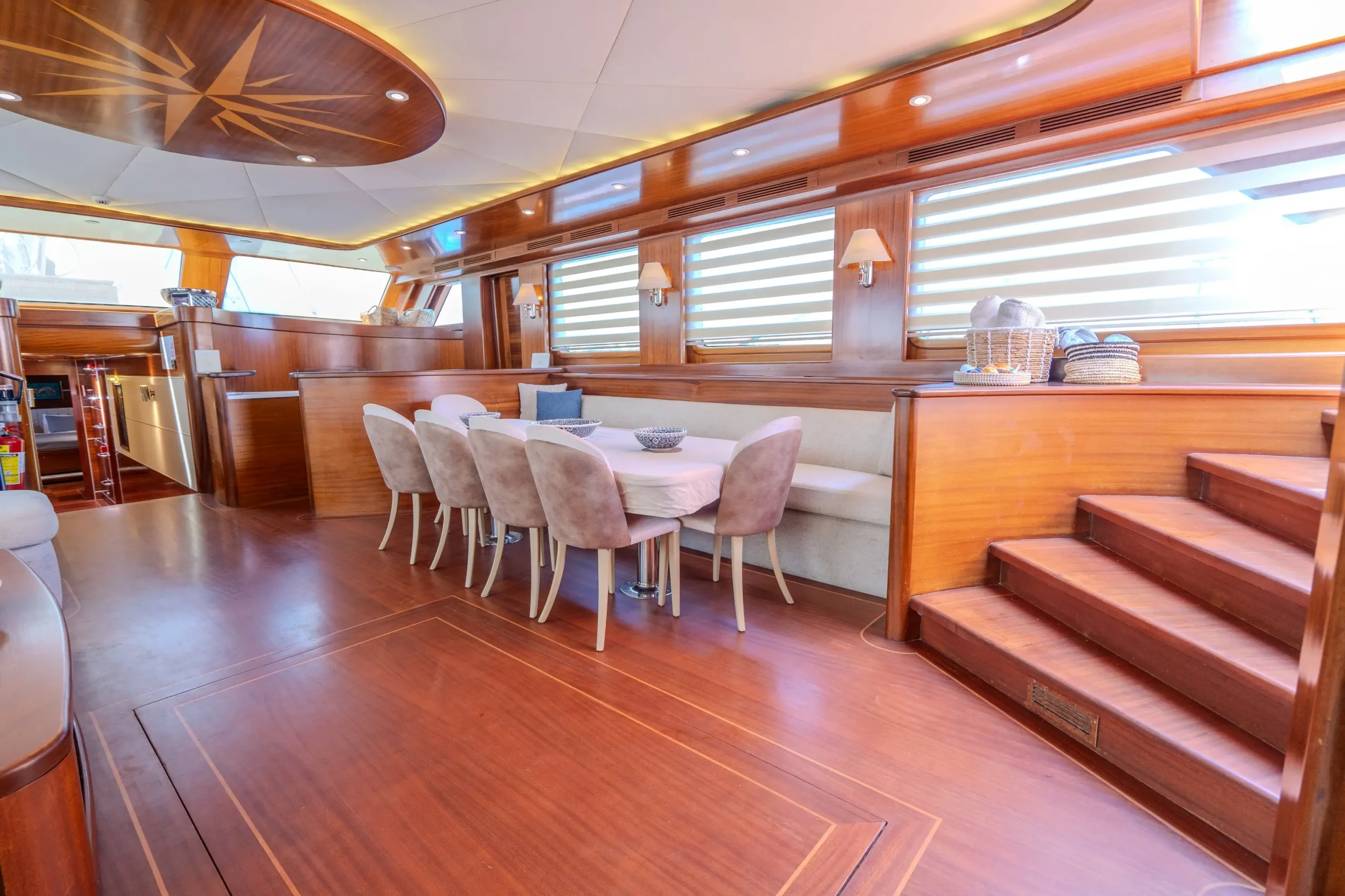 The yacht is a 19-meter classic wooden gulet, built in 2006 and refurbished in 2016. The vessel accommodates 6 guests in 3 air-conditioned cabins, featuring 4 WCs and showers. Amenities include entertainment systems, canoe, snorkeling, and fishing gear, alongside modern safety and navigation equipment.