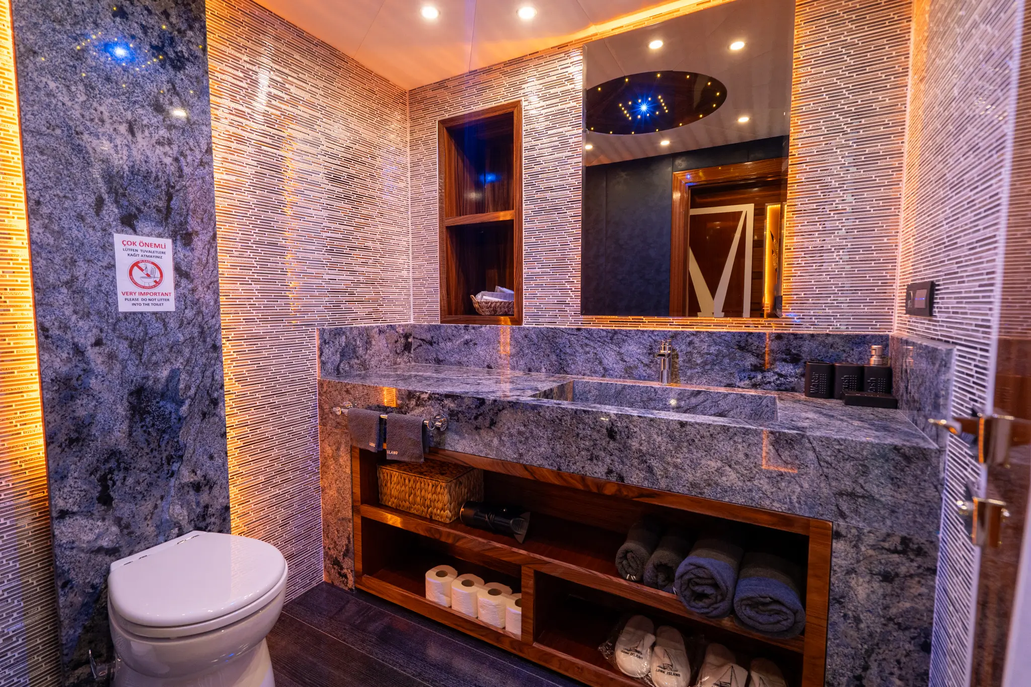Gulet Long Island was built in 2019. It took its final form with the renovation and renovation it underwent in 2022. It has 5 cabins, including 1 Master, 3 Double and 1 Twin Cabin, each more stylish and comfortable, with its own shower, WC and air conditioning. There are separate living areas, a fully equipped kitchen, indoor and outdoor dining areas and rest areas for the crew. There are sunbathing cushions, chairs and serving sets sufficient for all guests. Gulet Long Island, thanks to its full-fledged Radio, GSM Telephone and navigation equipment; Bodrum, Gocek, Marmaris, Fethiye etc. You can sail safely in blue cruise destinations.