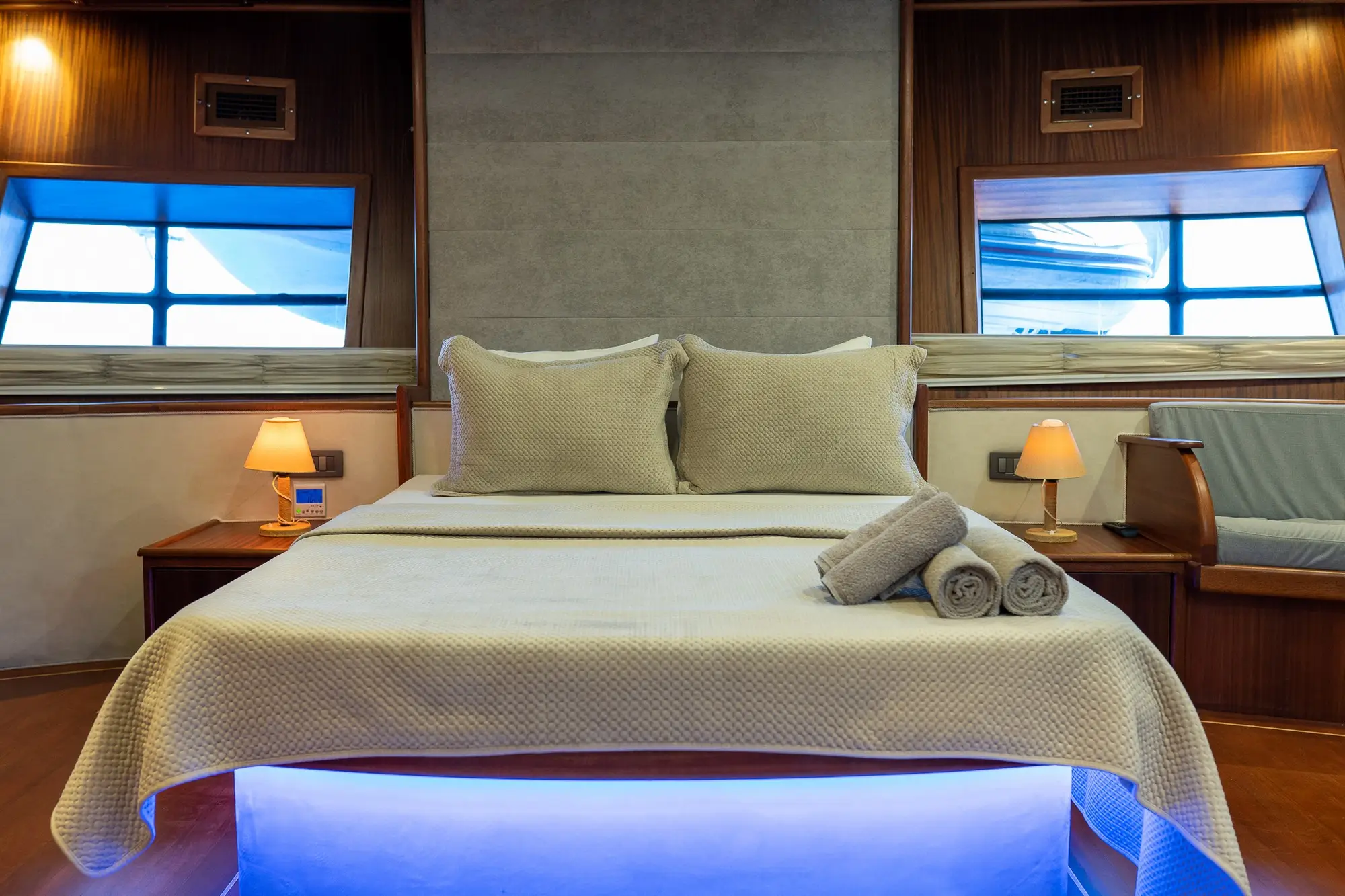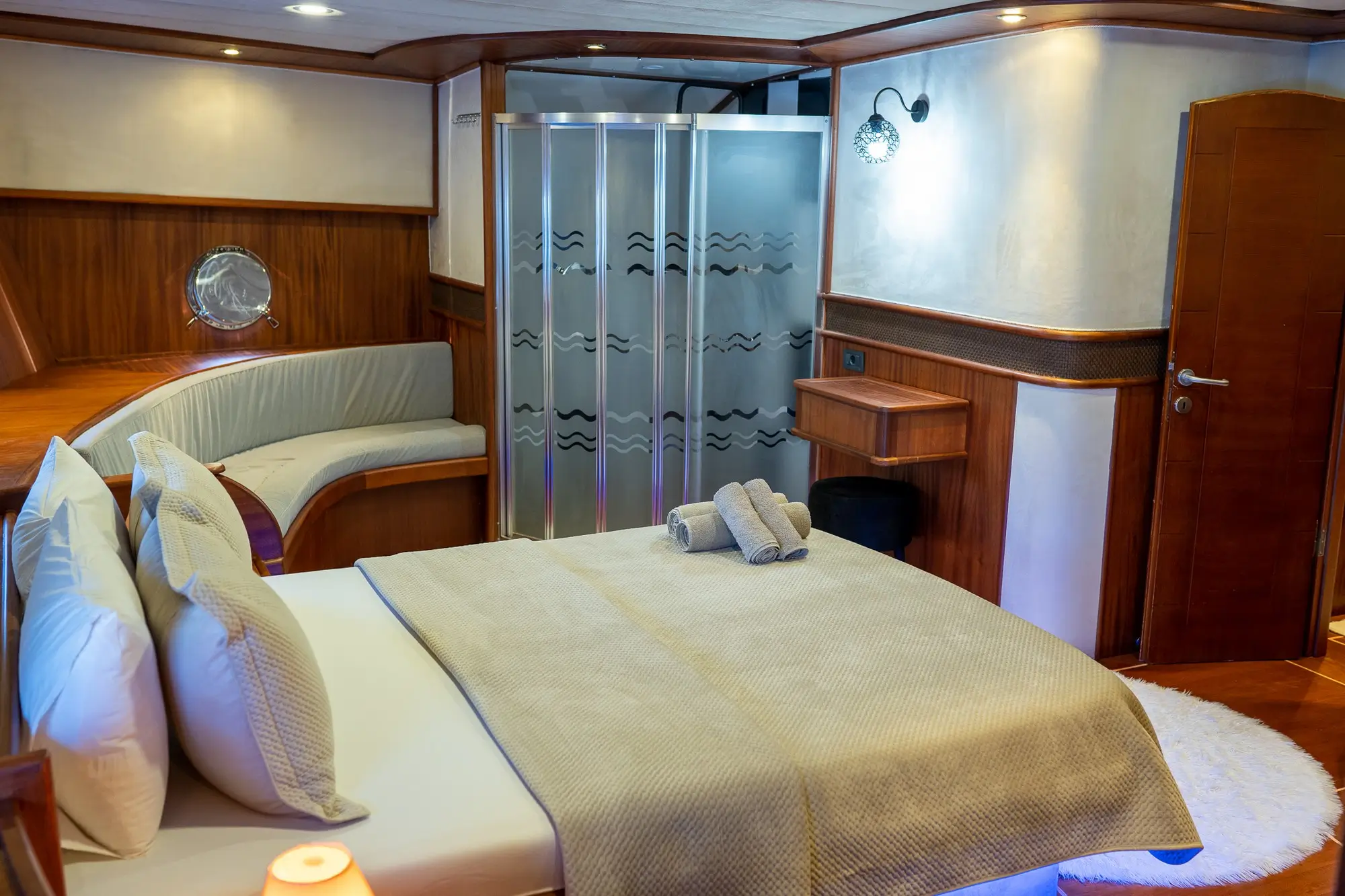 A cabin charter is when you just rent a cabin on a Turkish gulet —much like a hotel room—rather than charter the entire gulet. It is a cheaper option for those who aren't traveling with a big group.