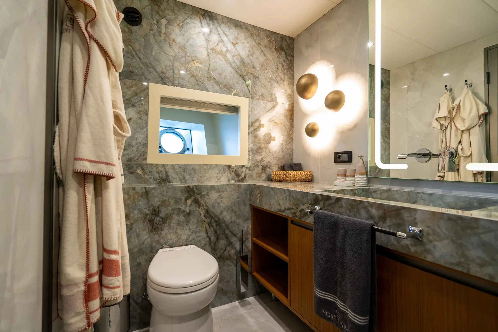 The Bella Mare is a 38-meter luxury gulet, staffed by a 7-member crew, designed to comfortably accommodate 12 guests in 6 cabins (2 master and 4 double). It's equipped with a wide array of water sports and entertainment options, including jet ski, water ski, wakeboard, ringo, big marble, Seabob, 2 canoes, 2 paddleboards, a PlayStation, Netflix, smart TV, along with unlimited WiFi, snorkeling and fishing equipment, and board games.